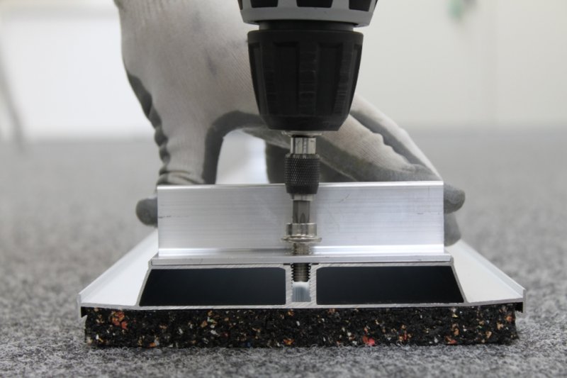 Die Stützen werden mittels Schrauben mit handelsüblichem Torx-Kopf in der Bodenschiene verankert.