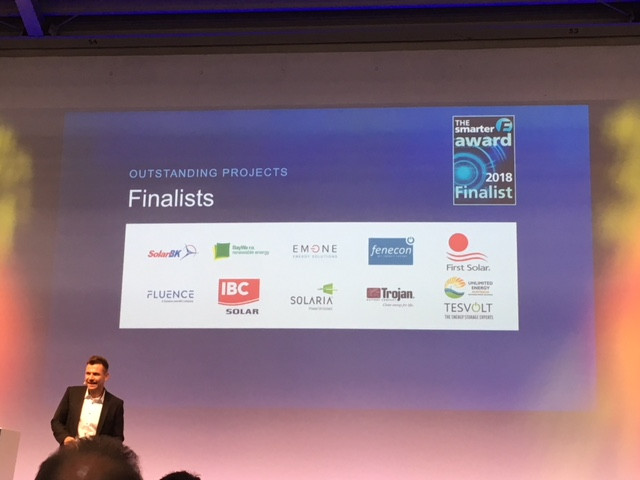 Wir bedanken uns bei allen Messebesuchern, die an unserem Stand vorbeigeschaut und das Gespräch mit uns gesucht haben. Leider haben wir es nicht geschafft, einen der diesjährigen „The Smarter E Awards“ mit nach Hause zu nehmen. Umsomehr freuen wir uns über eine „Partner des Jahres“-Auszeichnung, die uns spontan von unserem Partner und Modullieferanten GCL überreicht wurde!